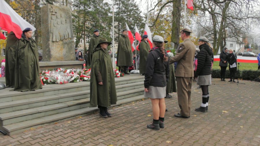 Pod Pomnikiem Niepodległości odbył się uroczysty apel, po którym delegacje złożyły wiązanki kwiatów.
